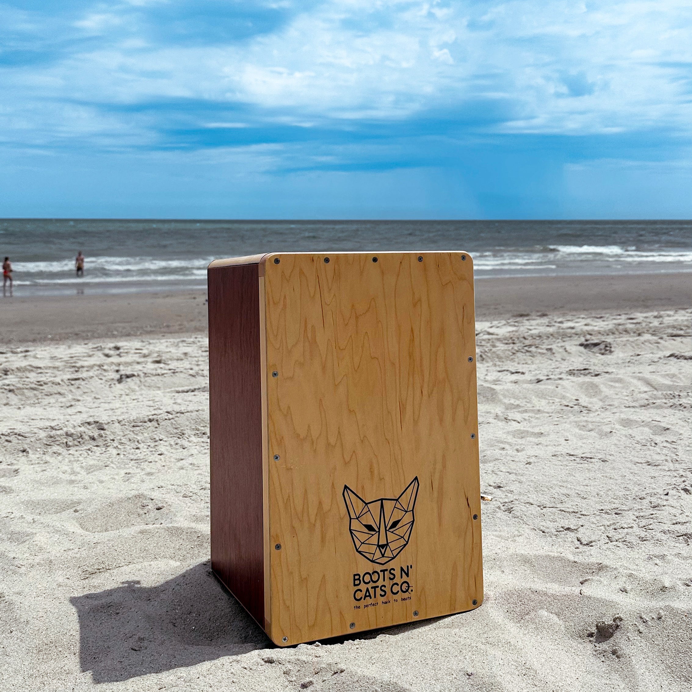 Boots N' Cats collapsible cajon is designed for musicians who frequently travels for gigs, rehearsals and studio sessions. We have used high quality laminated basswood on the front-plate for deeper bass and crisp snare tone. The back and side plates are made with high density fiber board and laminated padauk.